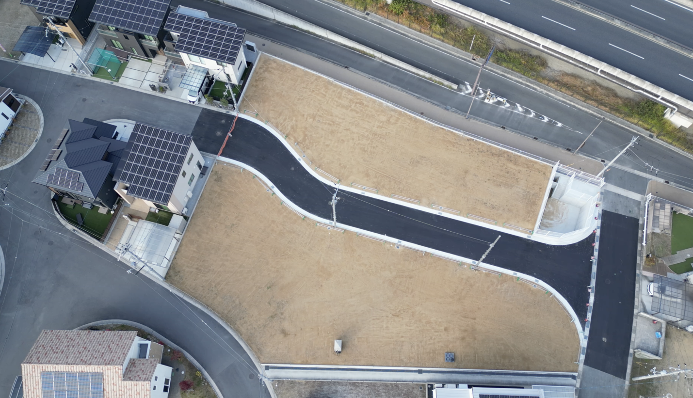 粟殿3期は全111区画の大きな分譲地で、近辺の大型分譲地の中でも一番の規模を誇り、